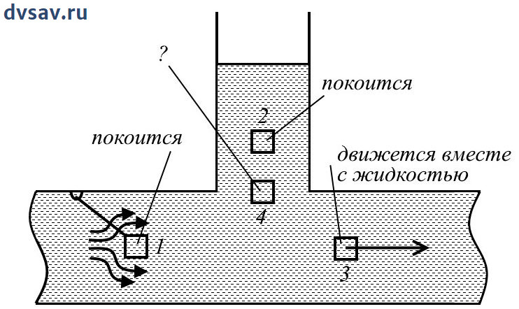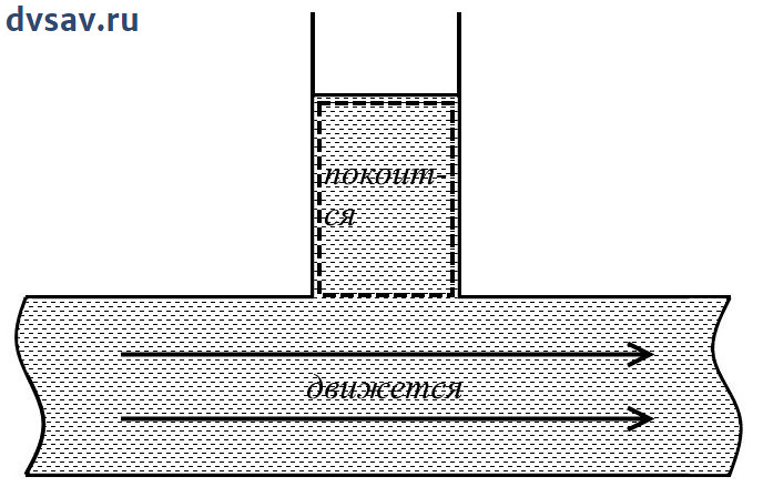 Для меня проблемы с пониманием начались с рассмотрения задачи, в которой присутствует одновременно и движущаяся, и покоящаяся жидкость (рис. 4).