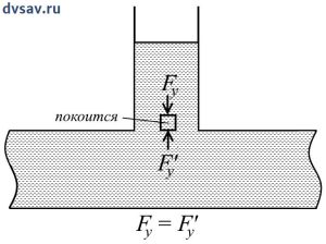 | Рисунок 6 — Равенство давлений, действующих на кубик со стороны движущейся и со стороны покоящейся жидкостей | |