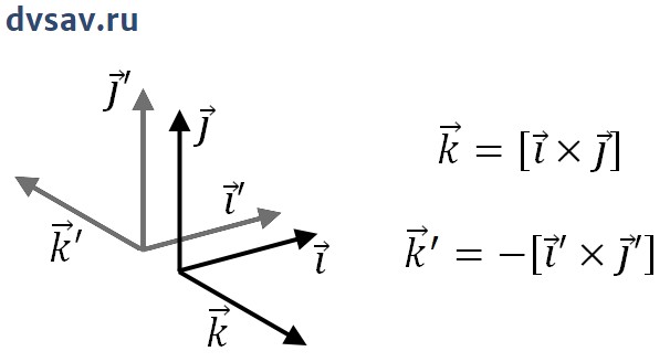 Правые и левые системы координат. Векторное произведение и псевдовекторы.